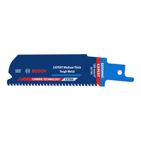 incl. BTWBosch EXPERT Medium-Dik Hard Metaal S555HHC reciprozaagblad, 10-dlg.