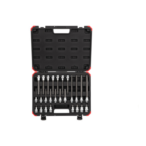 - VEILIGE OPSLAG: De GEDORE red kunststofbox zorgt voor een veilige en nette opslag van de 26-delige inzetstukset, zodat de inzetstukken niet kwijtraken