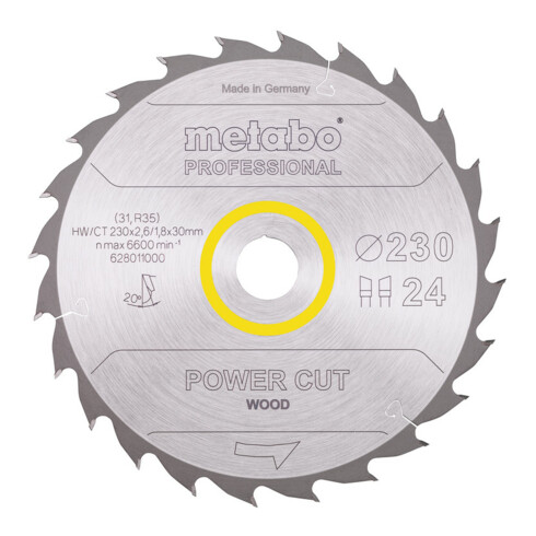 incl. BTWMetabo zaagblad "power cut wood - professional", 230x2,6/1,8x30, Z24 WZ 20°