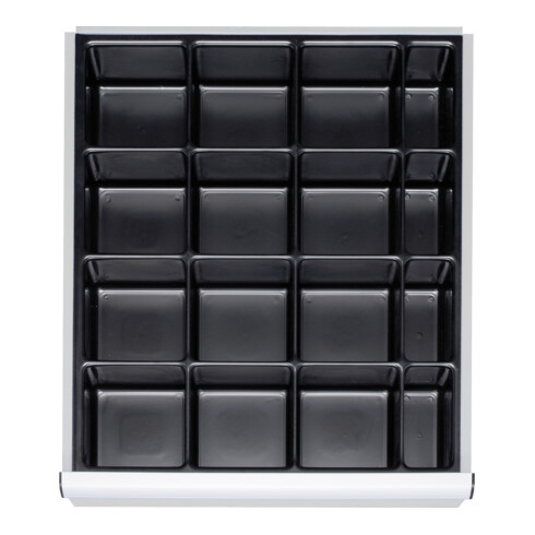 - Indelingsset voor kleine onderdelen met 16 vakken voor plaatsing in de schuifladen van de STIER Premium werkbanken
